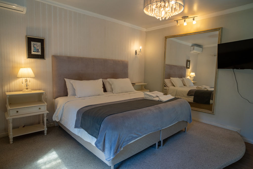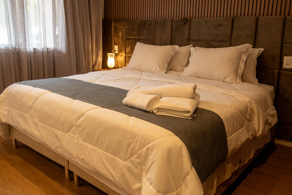 Suíte com varanda privativa, perfeita para apreciar o ar fresco de Gramado. Conforto, elegância e uma vista que inspira bons momentos.